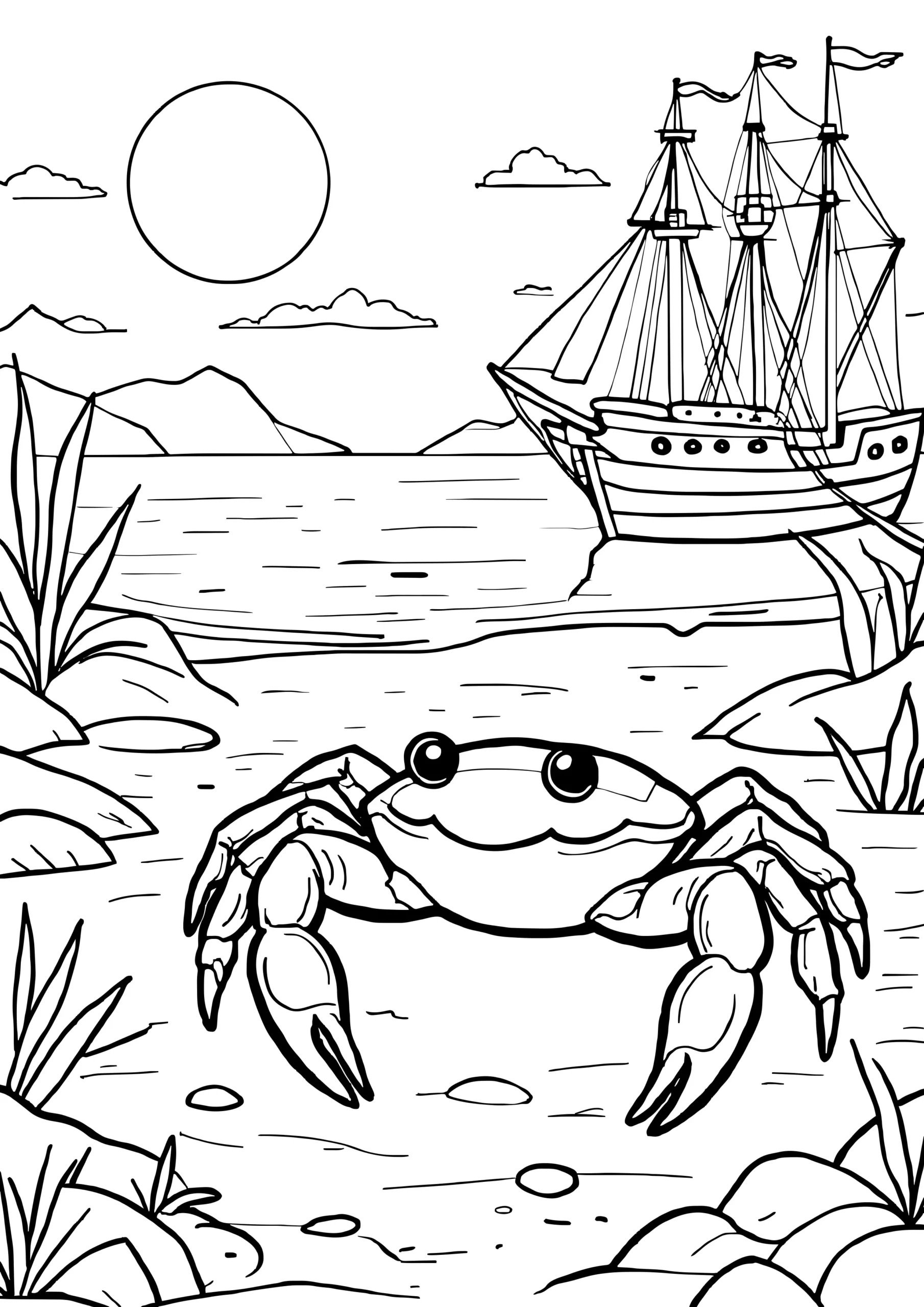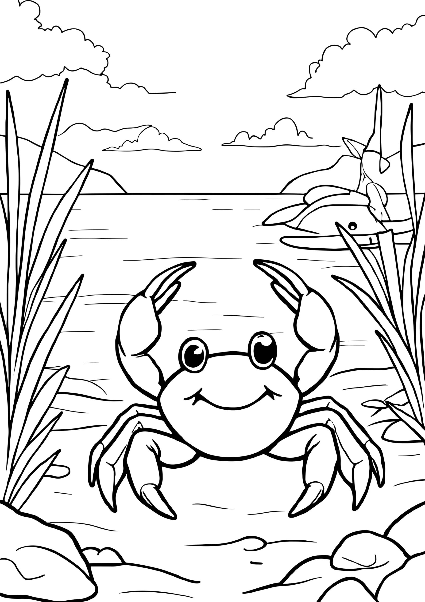 Scuttle into creativity with our collection of crabs coloring pages for kids. From cute cartoon-style crabs with big smiles to more detailed seaside scenes, these pages are perfect for children who love ocean animals and beach life.