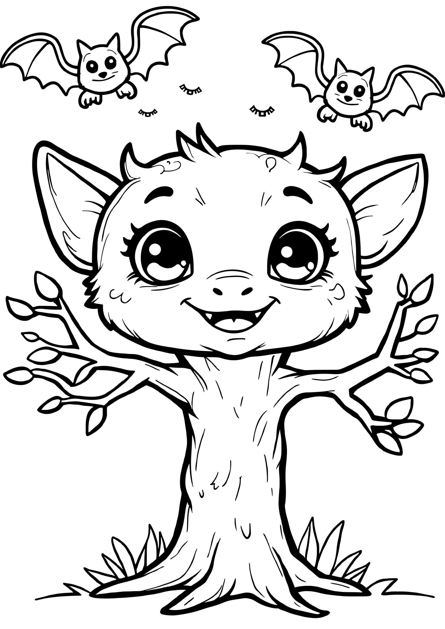 Friendly spooky tree with bats
