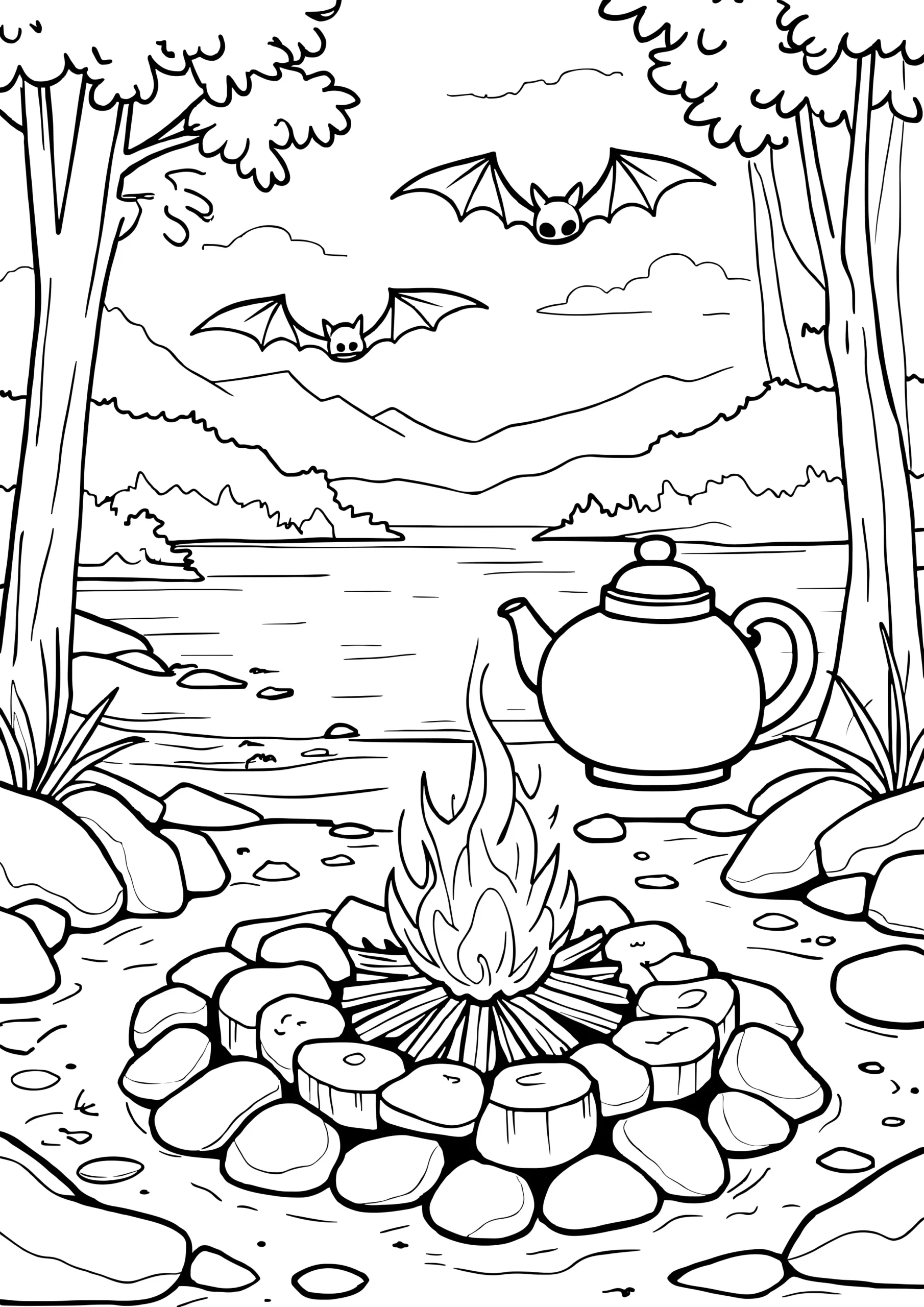 Campfire with bat overhead